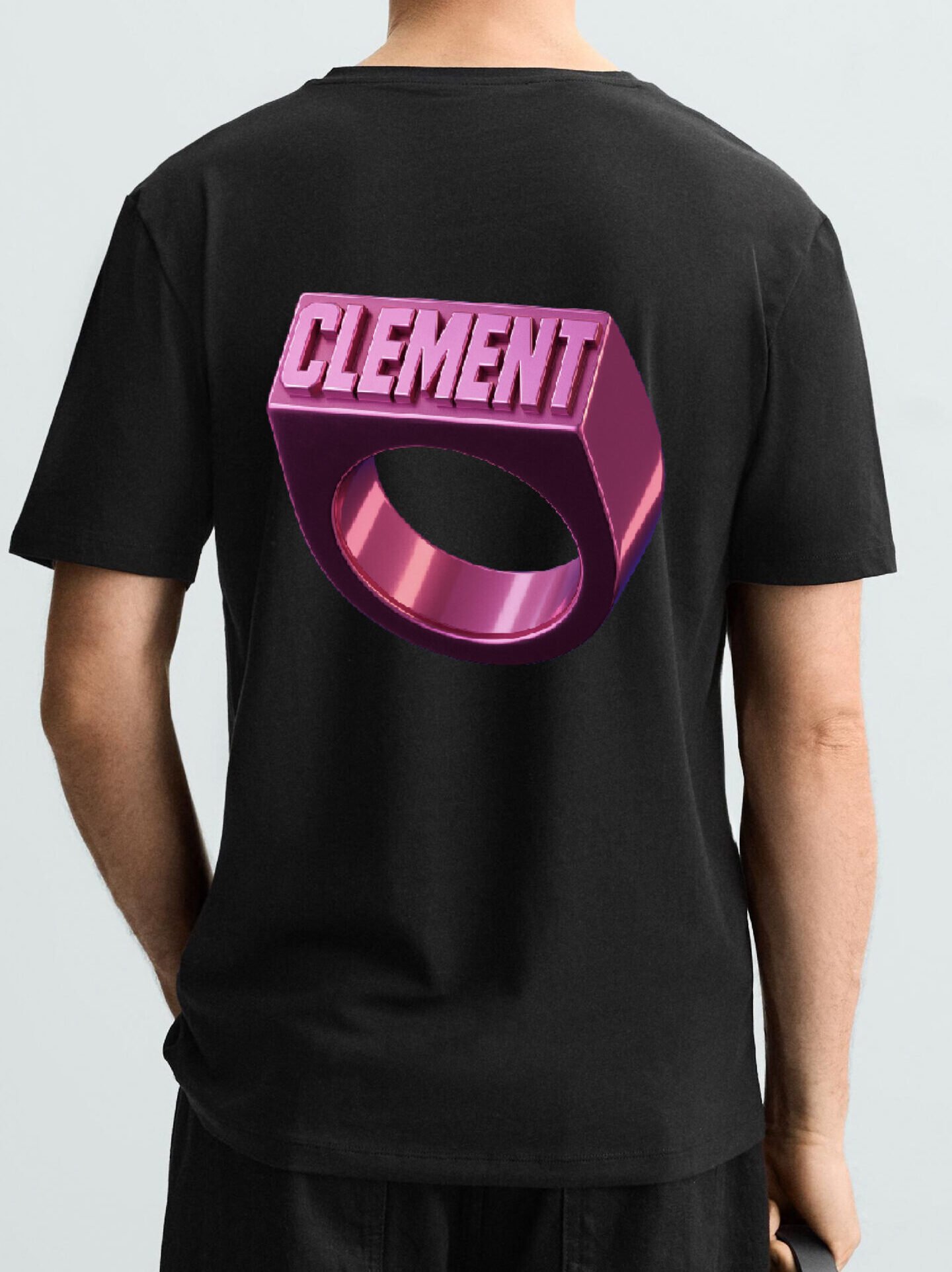 El diseño posterior destaca un anillo rosado en acabado 3D, con el logotipo Clement en alto relieve visual. Un gráfico moderno, llamativo y con estética futurista que aporta identidad y presencia sin perder la esencia minimalista de la marca.